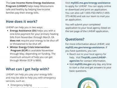 What is LIHEAP? The Low Income Home Energy Assistance Program (LIHEAP) helps keep Missourians safe and healthy by helping low-income families...